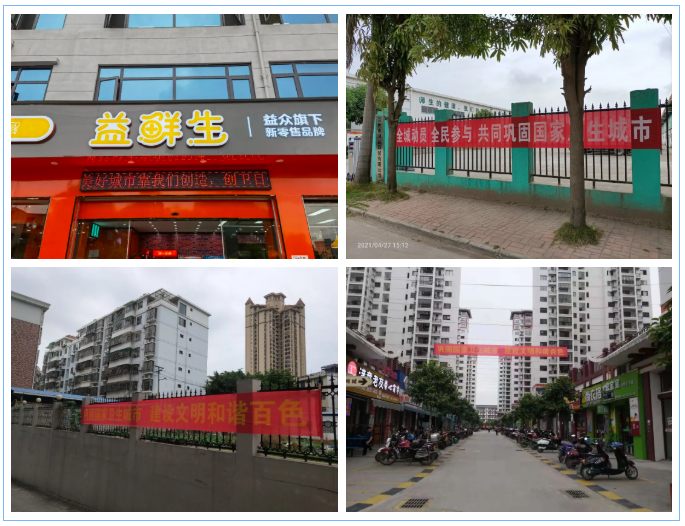 ????????公司在各辦公區(qū)域、經(jīng)營服務(wù)場所、管轄的生活小區(qū)、衛(wèi)生責(zé)任區(qū)等地,利用LED屏或懸掛宣傳橫額等方式播放、展示健康教育和創(chuàng)建國家衛(wèi)生城市有關(guān)宣傳標(biāo)語,營造人人參與創(chuàng)衛(wèi)的氛圍。