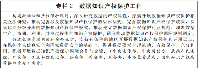 完善知識(shí)產(chǎn)權(quán)保護(hù)政策。健全大數(shù)據(jù)、人工智能、基因技術(shù)等新領(lǐng)域新業(yè)態(tài)知識(shí)產(chǎn)權(quán)保護(hù)制度。研究構(gòu)建數(shù)據(jù)知識(shí)產(chǎn)權(quán)保護(hù)規(guī)則。完善開(kāi)源知識(shí)產(chǎn)權(quán)和法律體系。完善電子商務(wù)領(lǐng)域知識(shí)產(chǎn)權(quán)保護(hù)機(jī)制。健全遺傳資源獲取和惠益分享制度,建立跨部門(mén)生物遺傳資源獲取和惠益分享信息共享制度。制定傳統(tǒng)文化、民間文藝、傳統(tǒng)知識(shí)等領(lǐng)域保護(hù)辦法。建立與非物質(zhì)文化遺產(chǎn)相關(guān)的知識(shí)產(chǎn)權(quán)保護(hù)制度。完善體育賽事節(jié)目、綜藝節(jié)目、網(wǎng)絡(luò)直播等領(lǐng)域著作權(quán)保護(hù)制度。完善紅色經(jīng)典等優(yōu)秀舞臺(tái)藝術(shù)作品的版權(quán)保護(hù)措施。完善服裝設(shè)計(jì)等時(shí)尚產(chǎn)業(yè)知識(shí)產(chǎn)權(quán)保護(hù)政策。健全藥品專利糾紛早期解決機(jī)制,制定相關(guān)配套措施。完善中醫(yī)藥領(lǐng)域發(fā)明專利審查和保護(hù)機(jī)制。健全綠色技術(shù)知識(shí)產(chǎn)權(quán)保護(hù)制度。完善高校知識(shí)產(chǎn)權(quán)保護(hù)管理規(guī)定。建立知識(shí)產(chǎn)權(quán)侵權(quán)損害評(píng)估制度。(中央宣傳部、中央網(wǎng)信辦、最高人民法院、教育部、財(cái)政部、生態(tài)環(huán)境部、文化和旅游部、市場(chǎng)監(jiān)管總局、廣電總局、國(guó)家林草局、國(guó)家中醫(yī)藥局、國(guó)家藥監(jiān)局、國(guó)家知識(shí)產(chǎn)權(quán)局等按職責(zé)分工負(fù)責(zé))