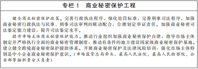 健全知識(shí)產(chǎn)權(quán)法律法規(guī)。開(kāi)展知識(shí)產(chǎn)權(quán)基礎(chǔ)性法律研究。統(tǒng)籌推進(jìn)專利法、商標(biāo)法、著作權(quán)法、反壟斷法、科學(xué)技術(shù)進(jìn)步法、電子商務(wù)法等相關(guān)法律法規(guī)的修改完善。加強(qiáng)地理標(biāo)志、商業(yè)秘密等領(lǐng)域立法,出臺(tái)商業(yè)秘密保護(hù)規(guī)定。完善集成電路布圖設(shè)計(jì)法規(guī)。推進(jìn)修訂植物新品種保護(hù)條例。制定中醫(yī)藥傳統(tǒng)知識(shí)保護(hù)條例。完善與國(guó)防建設(shè)相銜接的知識(shí)產(chǎn)權(quán)法律制度。全面建立并實(shí)施知識(shí)產(chǎn)權(quán)侵權(quán)懲罰性賠償制度,加大損害賠償力度。研究建立健全符合知識(shí)產(chǎn)權(quán)審判規(guī)律的特別程序法律制度。適應(yīng)科技進(jìn)步和經(jīng)濟(jì)社會(huì)發(fā)展需要,依法及時(shí)推動(dòng)知識(shí)產(chǎn)權(quán)法律法規(guī)立改廢釋。(中央宣傳部、最高人民法院、最高人民檢察院、科技部、工業(yè)和信息化部、司法部、農(nóng)業(yè)農(nóng)村部、商務(wù)部、國(guó)家衛(wèi)生健康委、市場(chǎng)監(jiān)管總局、國(guó)家國(guó)防科工局、國(guó)家林草局、國(guó)家中醫(yī)藥局、國(guó)家知識(shí)產(chǎn)權(quán)局、中央軍委裝備發(fā)展部等按職責(zé)分工負(fù)責(zé))