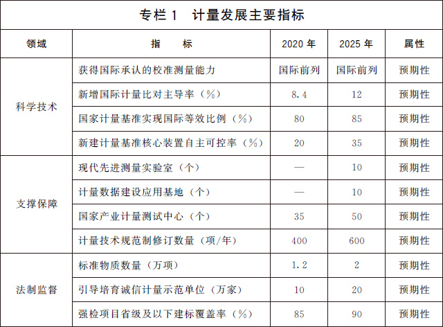 (三)發(fā)展目標(biāo)。到2025年,國家現(xiàn)代先進測量體系初步建立,計量科技創(chuàng)新力、影響力進入世界前列,部分領(lǐng)域達到國際領(lǐng)先水平。計量在經(jīng)濟社會各領(lǐng)域的地位和作用日益凸顯,協(xié)同推進計量工作的體制機制進一步完善。